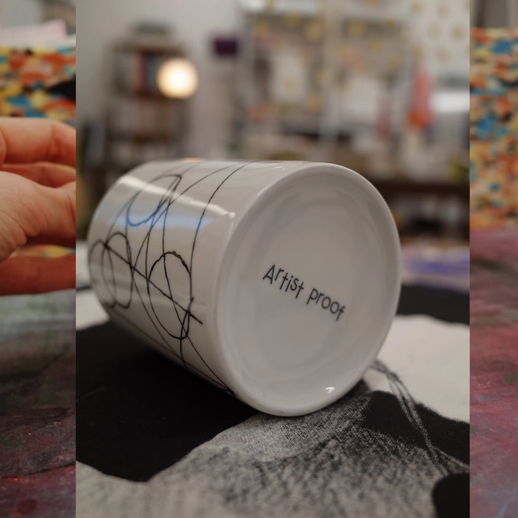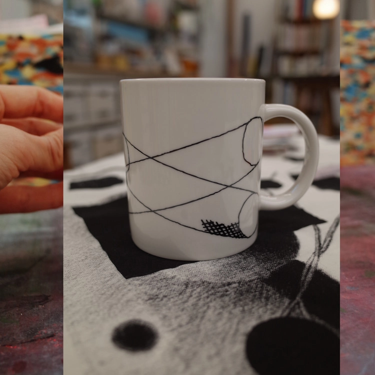 새로운 드로잉 머그컵을 제작하였습니다. 재봉 스티치로 드로잉한 <주기적인 반응>을 화이트 유광 머그에 담았습니다. 생동감 있는 머그컵과 함께 랜덤 코스터 1장이 함께 동봉되어 있습니다.