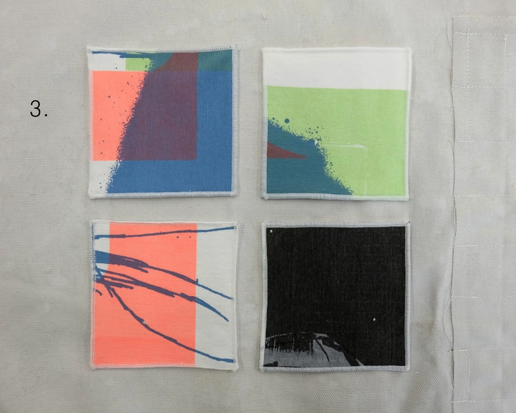 - 여러 레이어의 이미지가 중첩되어 하나의 그림을 이루는 패브릭 작업