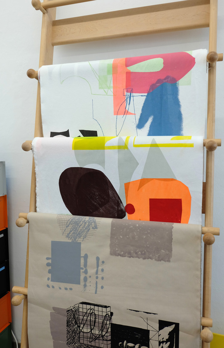 - 여러 레이어의 이미지가 중첩되어 하나의 그림을 이루는 패브릭 작업