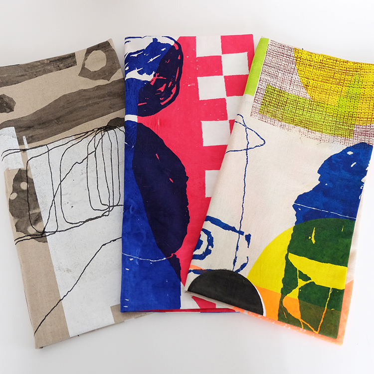 - 여러 레이어의 이미지가 중첩되어 하나의 그림을 이루는 패브릭 작업